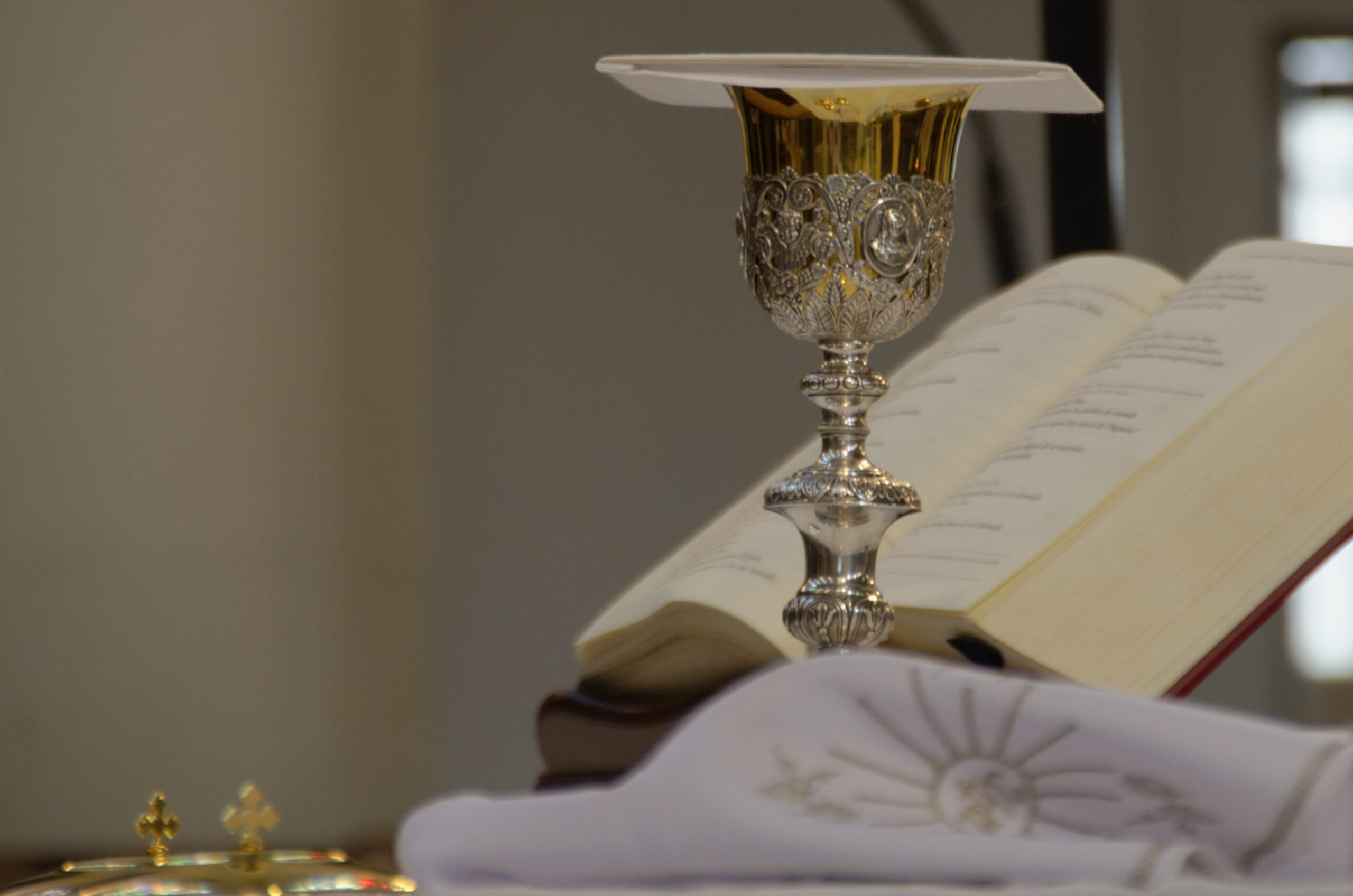 Dans l’Eucharistie, Jésus-Christ se donne à nous, afin que, par amour nous aussi nous nous donnions à lui. Jésus a institué l’Eucharistie la veille de sa mort quand il célébra avec ses apôtres la dernière Cène. La célébration de l’Eucharistie, pendant la Messe, est le cœur de la communion chrétienne. Dieu nous transforme par la communion avec lui et, par nous, transforme le monde.