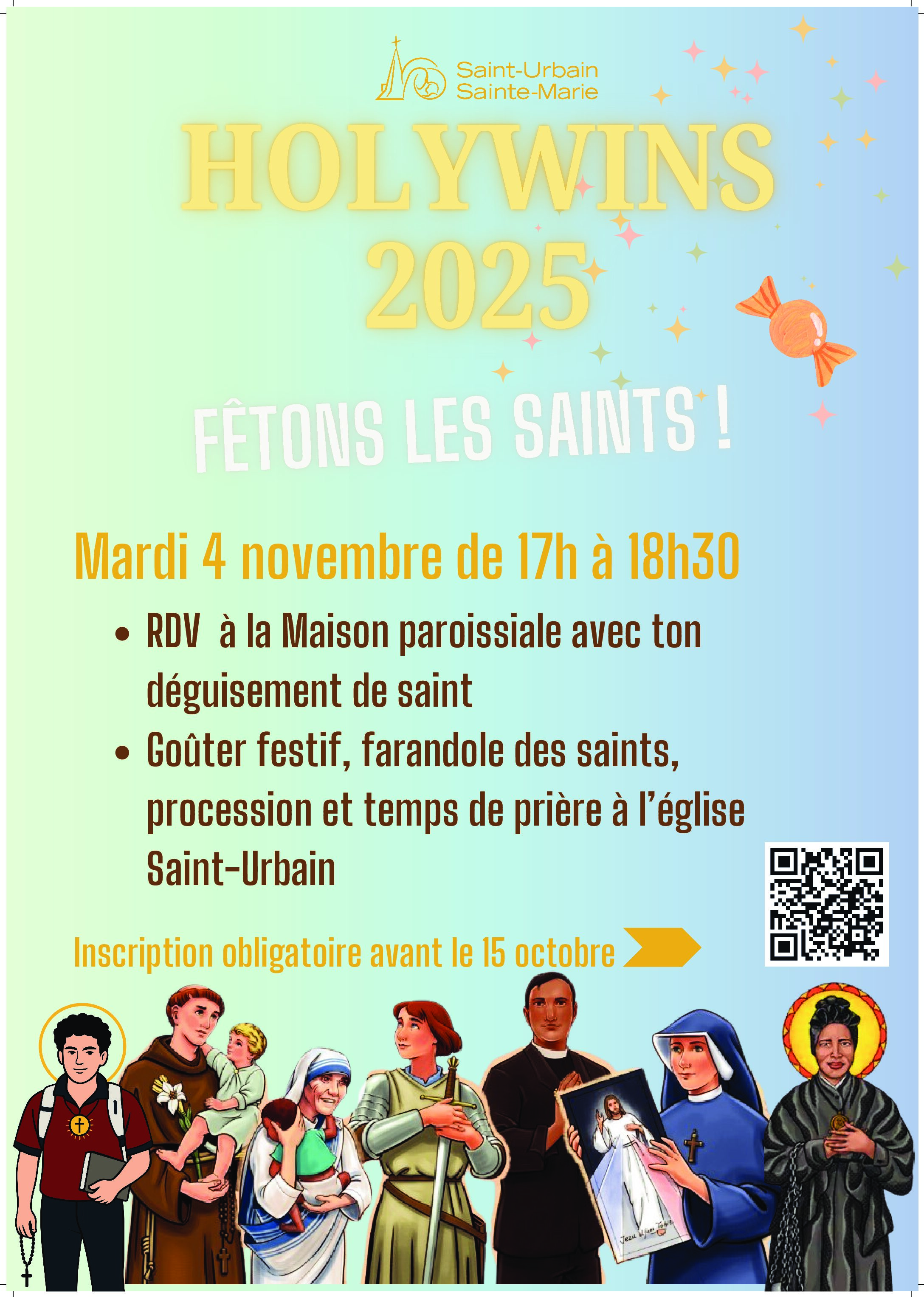 Goûter festif, farandole des saints, procession et temps de prière à l’église Saint-Urbain.