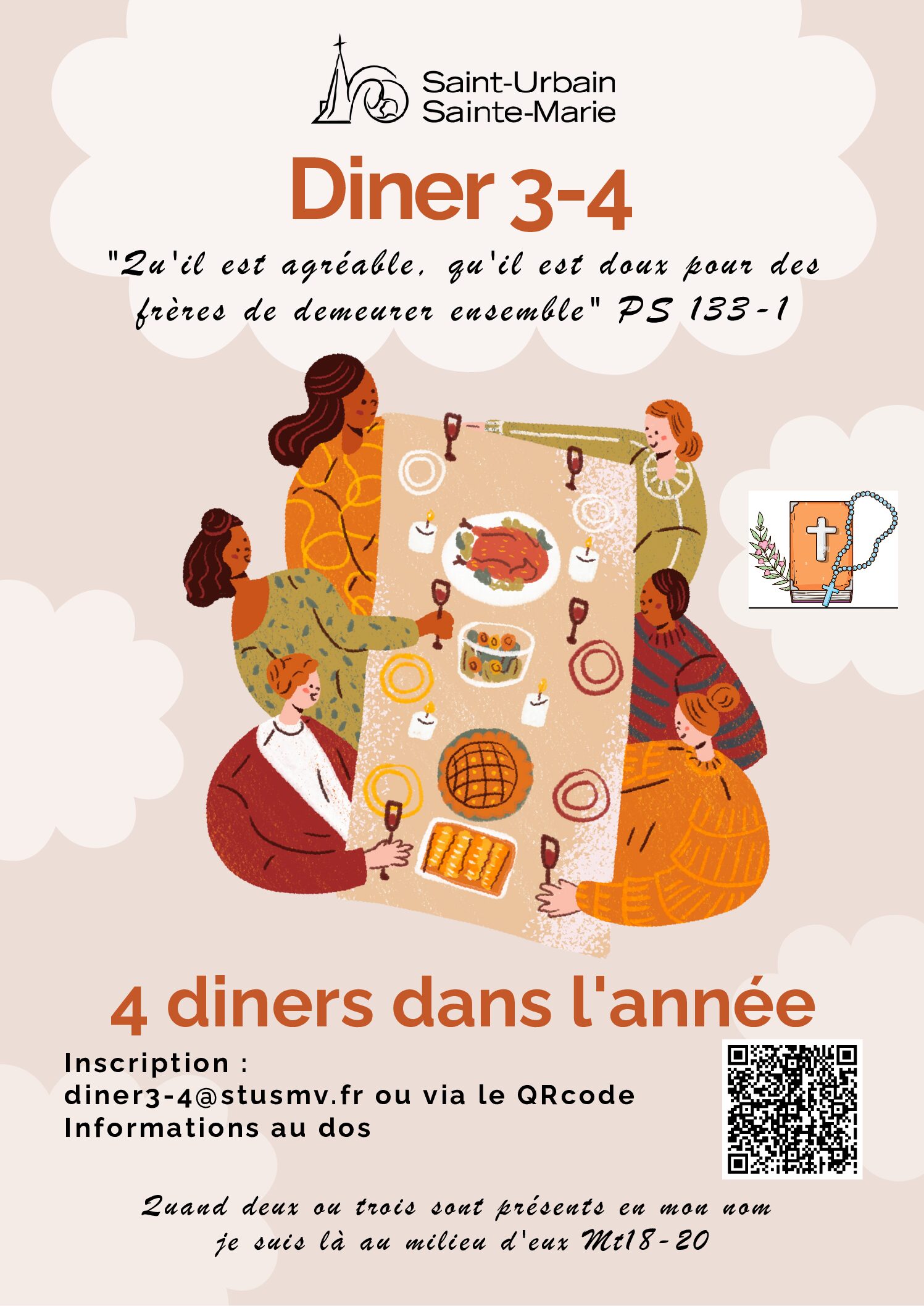 Fort du bel élan fraternel vécu l’an dernier, la paroisse renouvelle avec joie l’expérience des dîners 3-4.